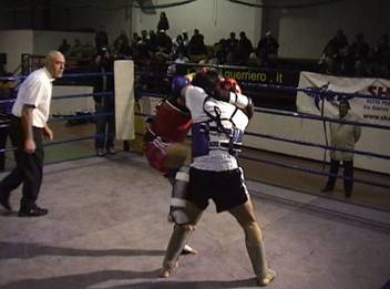 Secondo round, dove il napoletano inizia sempre all’attacco, davide riesce adirittura a mandare a vuoto l’avversario, in un paio di circostanze, ed a rientrare con buoni calci medi e braccia. Come nella prima ripresa il campano cala di fiato e missile attacca con calci, pugni, ginocchia, lavorando molto bene anche in clinch, in più di un occasione riesce ad infilare delle buone combinazioni di gomito. L’atleta di napoli è sempre, nonstante le riprese tirate, molto efficace nei colpi, un po’ meno nelle tecniche, qualche buona azione con le braccia per il partenopeo, che però non riesce a trovare la chiave o la combinazione corretta per sorprendere il bolognese.